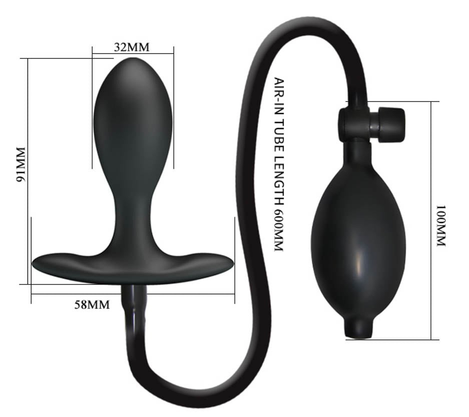 Ce plug gonflable de la marque Pretty Love est un sextoy composé d’une longueur insérable de 8cm et d’une largeur de 3cm au départ. Celle-ci peut atteindre 6cm avec le gonflage. Le gonfleur est amovible. Avec une bille intérieure pour un effet vibrant. En latex