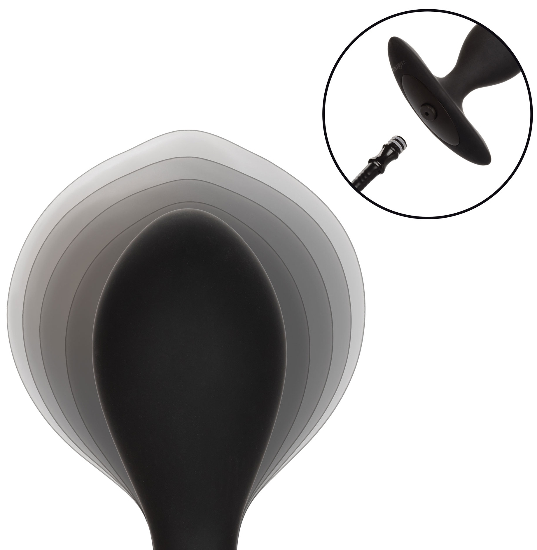 Plug gonflable avec une bille intérieure mobile pour des effets de vibrations.Longueur insérable de 7.5 cm. Largeur de 3.2 cm avant le gonflage. Gonfleur amovible. En matière silicone
