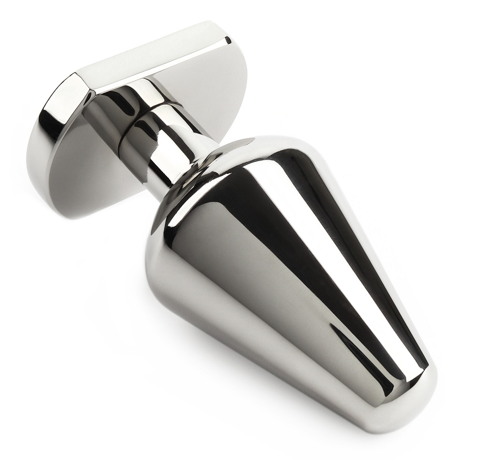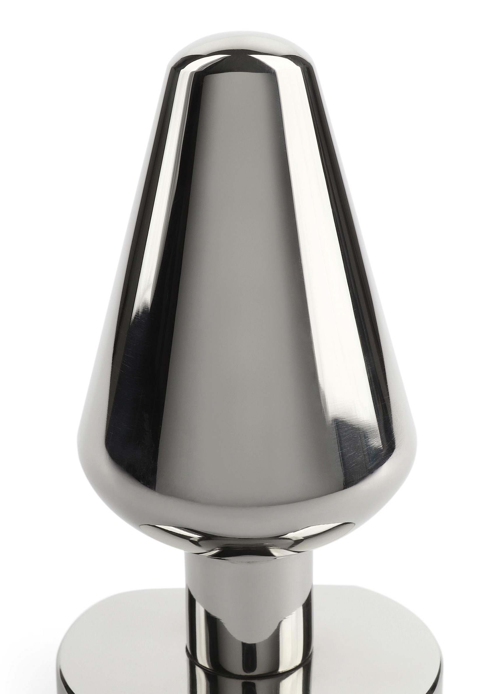 Plug avec une longueur insérable de 7 cm et une largeur maximale de 3.7 cm.Sa surface est lisse et la base est resserrée pour le maintenir plus facilement.Avec un poids de 360 grammes. En acier inox.