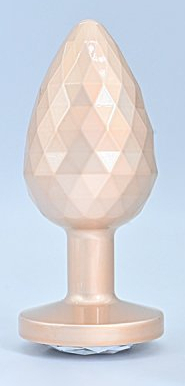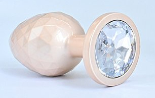 Plug bijou, de forme conique et au léger relief.Longueur insérable de 7 cm et largeur de 1.2 à 3.3 cm.En métal, avec fausse pierre transparente.