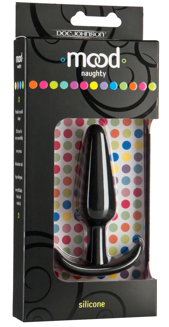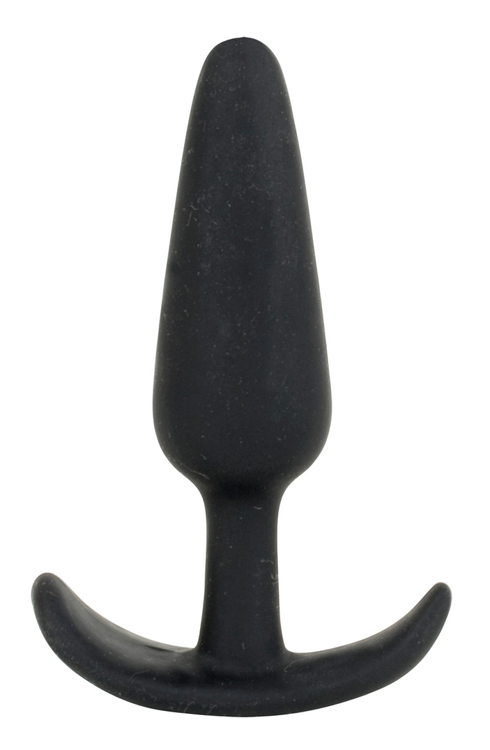 Plug souple d’une forme conique, avec une base incurvée.  Longueur insérable de 9 cm et largeur de 1.4 à 2.5 cm. En silicone noir