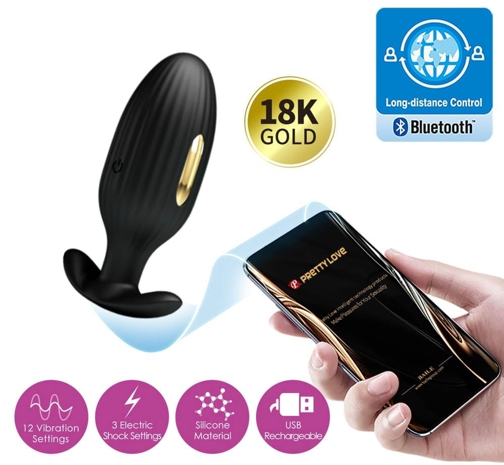 Ce plug vibrant Electro est un sextoy connecté de la marque Pretty Love.Il est composé de : deux plaques en métal sur les côtés qui transmettent une impulsion électrique (3 intensités) la longueur insérable de 8cm une largeur de 3.3cm. Il dispose de 12 modes de vibrations. En siliconeRecharge USB