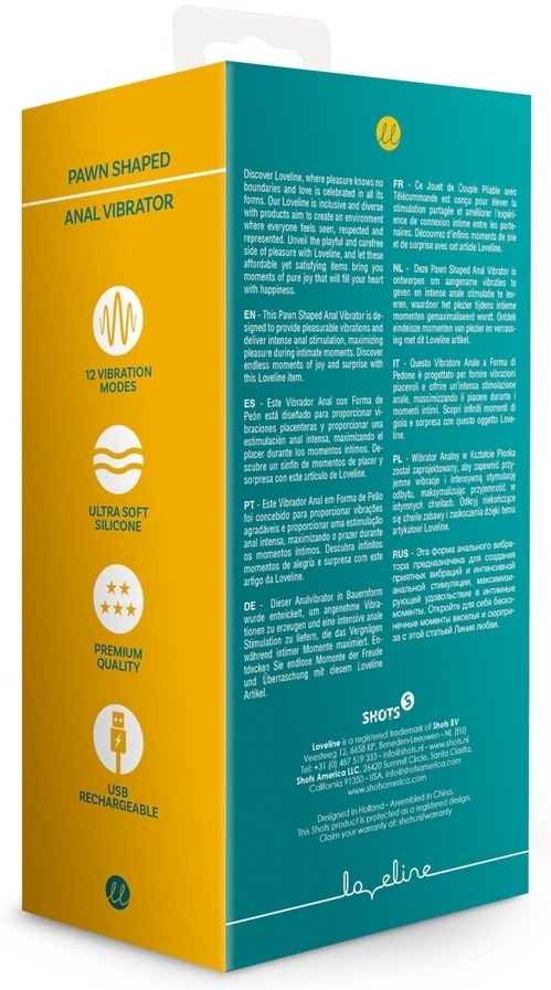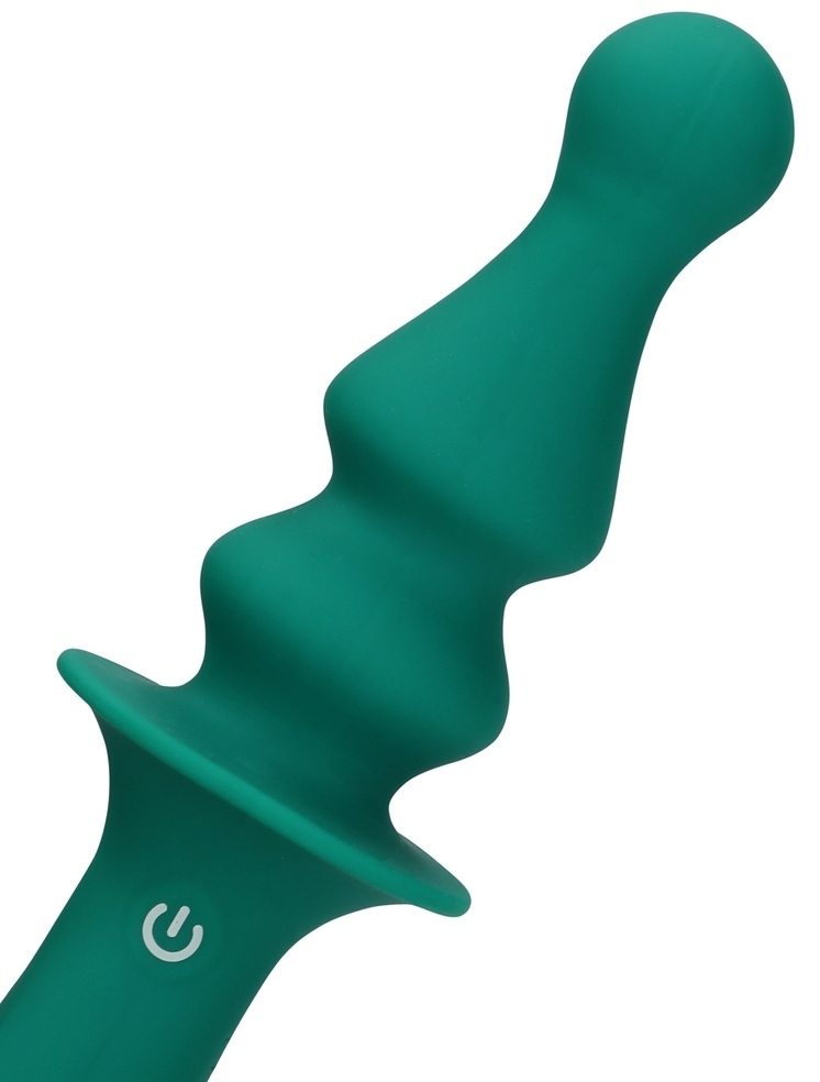 Plug vibrant avec 12 niveaux de vibrations et une forme originale possédant des variations d’épaisseurs. Longueur de 9 cm. Largeur minimale de 1.2 cm. Largeur maximale de 3.5 cm. En silicone.Recharge USB.