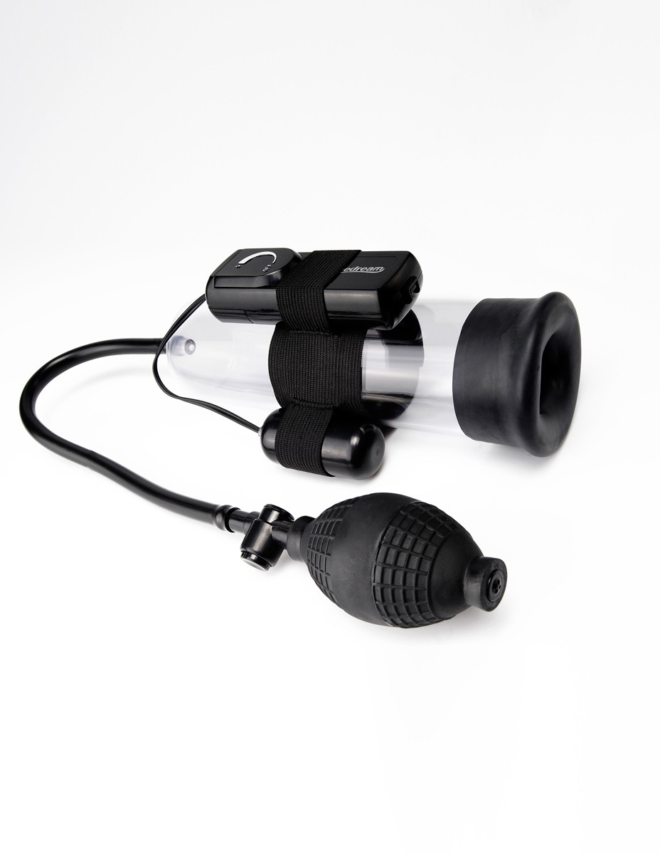 La pompe vibrante pour le pénis est un accessoire qui permet de rendre le sexe plus gros et d’augmenter les sensations grâce au système de vibrations.Il est conçu pour que le vide d’air à l’intérieur du tube gonfle le pénis et l’allonge sur 19cm de long. La largeur est de 5cm. Fourni avec un mini cockring