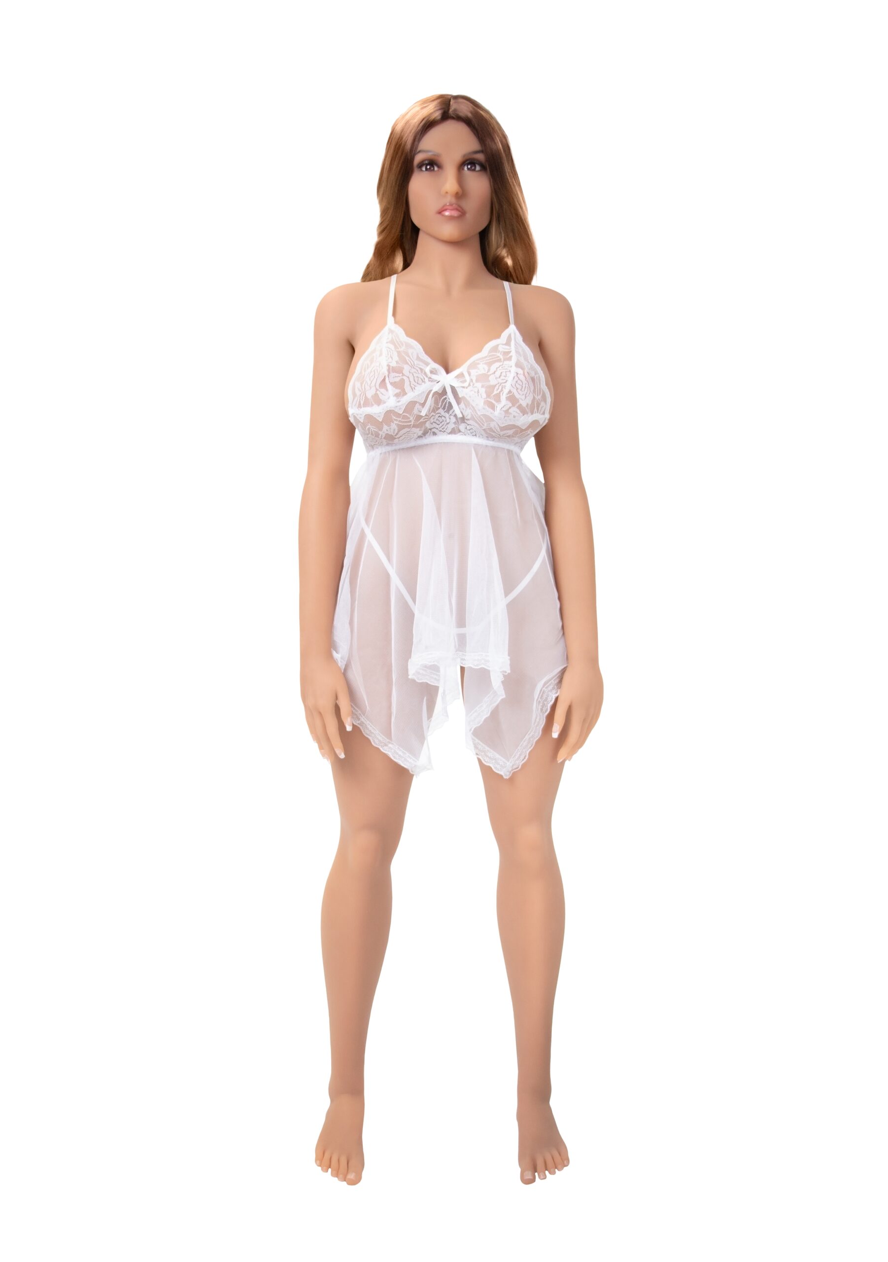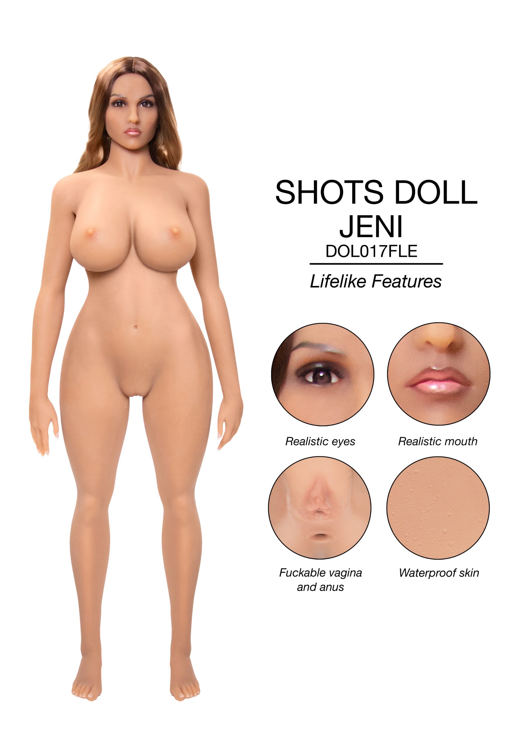 Jeni vous donnera le vertige avec une joie érotique. Sa peau douce, ses beaux cheveux et ses traits réalistes vous feront vivre une expérience réaliste. Jeni se donnera à vous, elle réalisera tous vos rêves coquins.Vous pouvez vous faire plaisir avec Jeni de trois manières différentes. Elle a un vagin juteux, un cul serré et une bouche douce disponibles pour votre plaisir à tout moment. Pour donner une sensation encore plus réaliste, un élément chauffant est ajouté. Pour utiliser l’élément chauffant, chargez-le via un port USB. En 3 minutes, l’élément devrait avoir atteint sa chaleur maximale. Ensuite, vous pouvez insérer l’élément dans l’ouverture préférée de Jeni pour un accueil agréable et chaleureux.Cette poupée sexy est complètement posable et n’a pas besoin d’un standard grâce aux boulons de support (mais notez : elle ne peut pas se tenir debout sans ces boulons). Jeni aime avoir et porter différentes chaussures, bien que les chaussures plates soient recommandées.Les zones vaginales, anales et orales de Jeni doivent être nettoyées après chaque utilisation pour éviter une accumulation de bactéries. Vous ne pouvez utiliser qu’un lubrifiant à base d’eau avec Jeni. Les lubrifiants à base de silicone ou de pétrole peuvent endommager sa peau. Jeni a une peau sensible, qui peut aussi éventuellement se tacher. Vous devrez la tenir à l’écart des articles contenant de l’encre, comme les journaux, les magazines, les matériaux de couleur sombre, les draps noirs ou mouillés ou les matériaux en cuir contenant des pigments solubles dans l’huile également.Ce qui est inclus avec Jeni :- Elément chauffant corporel USB- 1 boule de poitrine- Set de lingerie- Clous pressés de rechange supplémentaires- Brosse à cheveux- Lotion corporelle / lubrifiant- Nettoyant pour jouets- Poudre régénératrice- Irrigateur nettoyant- 1 Accessoire supplémentaire vagin- Manuel d’instructions