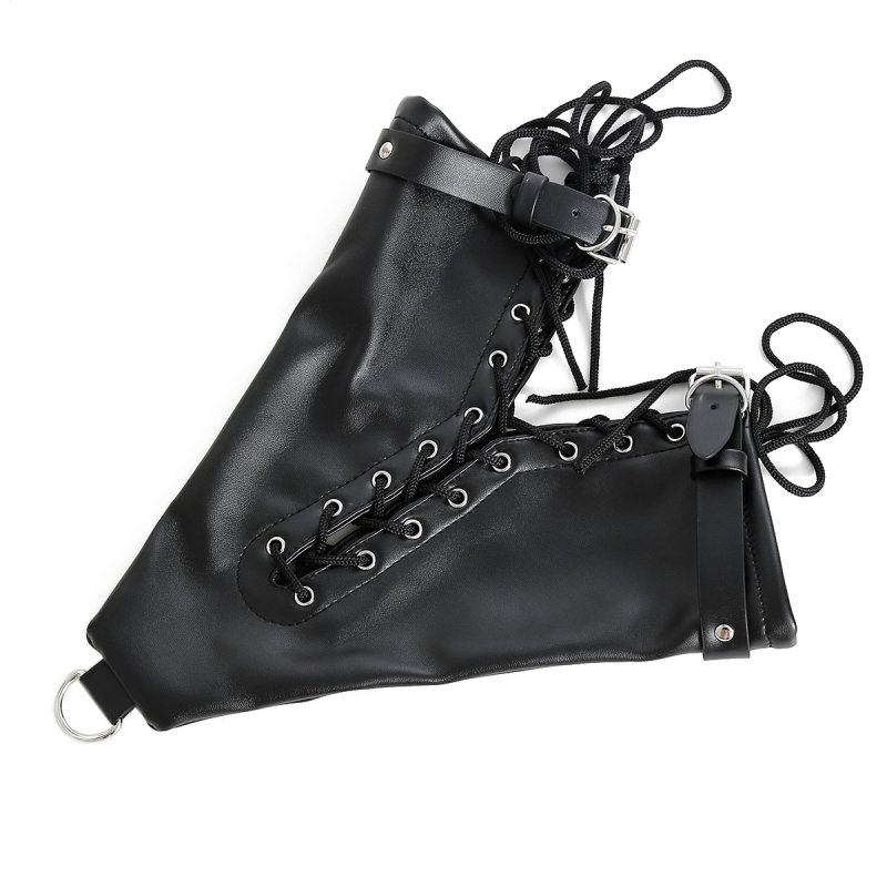 Accessoire pour bloquer l’usage des mains et des bras.Avec lacets et sangles ajustables. Tour jusqu’à 29 cm.Petit anneau en métal à l’extrémité. Longueur de 30 cm pour mettre ses bras. En matière Simili.
