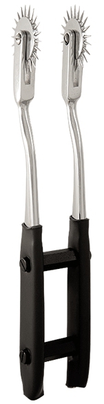 Cette roue double à picots Pinwheel est un sextoy pour l’électrostimulation de la marque Electrastim. Elle permet deux fois plus de frissons et de plaisir grâce à aux deux roues qui viennent rouler sur la peau.Les deux parties transmettent les impulsions électro intenses. Longueur de 17cm.