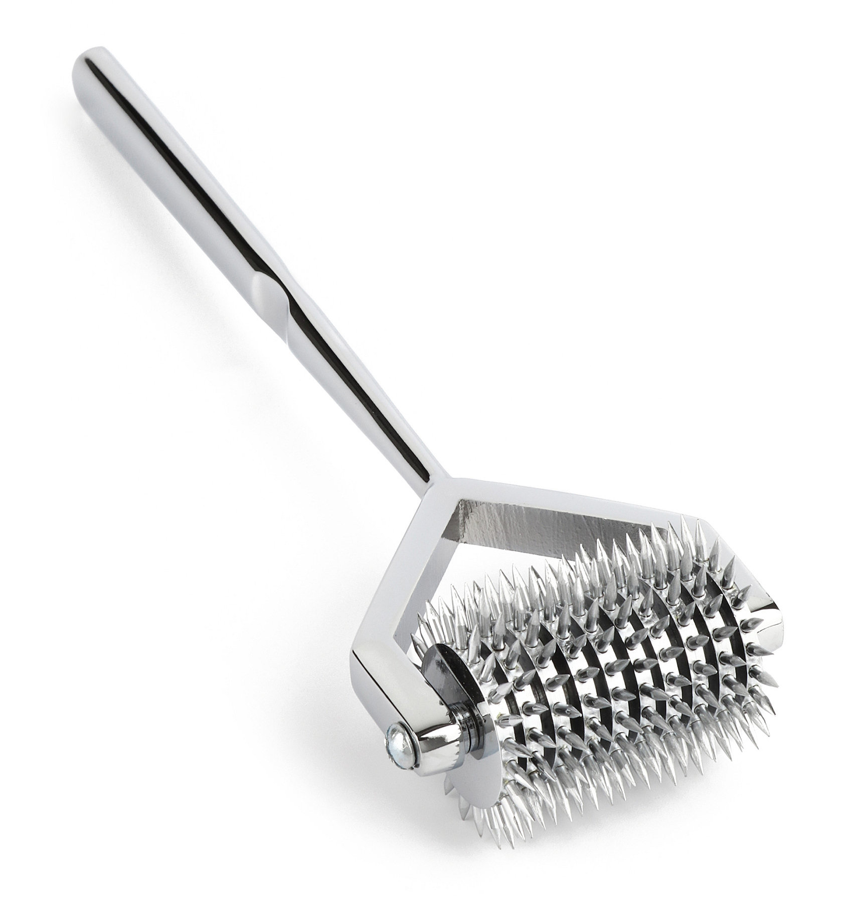 Cette roulette de Wartenberg est composée de 10 roues comportant des picots.Idéale pour les jeux Sm. Longueur de 17 cm. Fabriquée en acier inox.