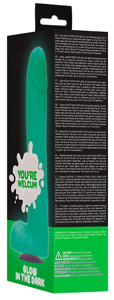 Ce savon Pénis DICKY GLOW est phosphorescent et permet de se laver les mains de façon fun.En forme de sexe de 18cm de longueur et de 3.5cm de largeur. Avec une base ventouse