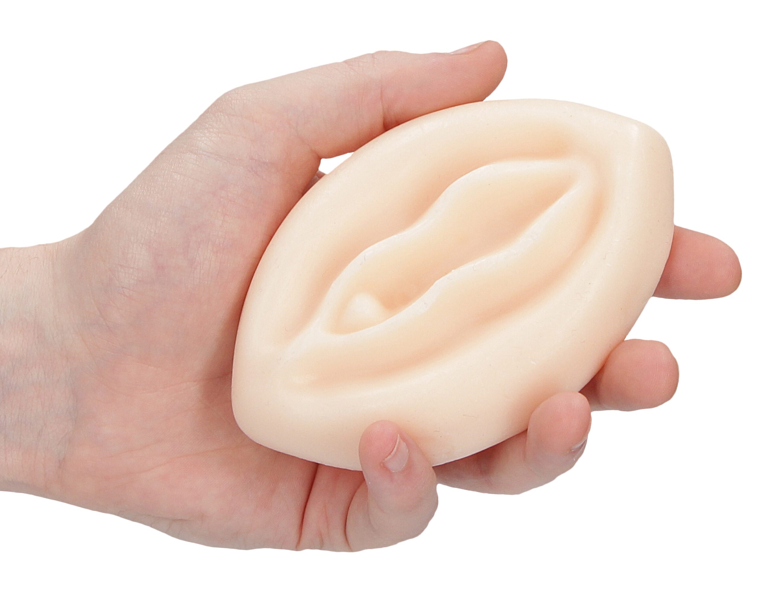 Ce savon est élaboré en forme de vulve réaliste. Longueur de 12.8cm et Largeur maximum de 8.2cm. Il est idéal pour se laver les mains de façon ludique.