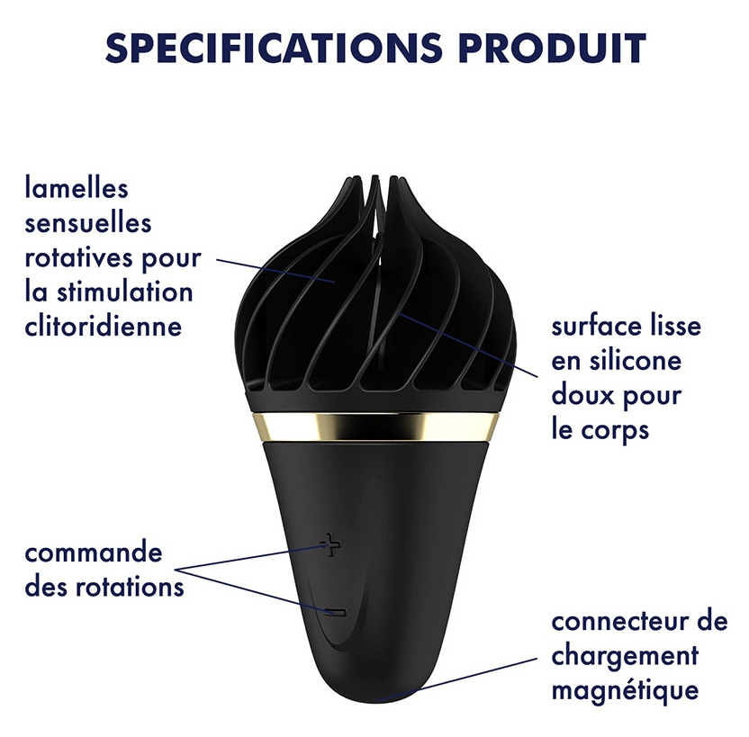 Ce stimulateur clitoridien Sweet Treat de la marque Satisfyer est un sextoy féminin idéal pour les moments coquns.Il est composé d’une tête rotative avec des lamelles qui viennent rendent les sensations intenses et jouissives. Cet accessoire possède 4 rythmes de rotation et 3 vitesses (gauche et droite) pour varier l’intensité et le plaisir procuré.Il est en silicone. Recharge en USB