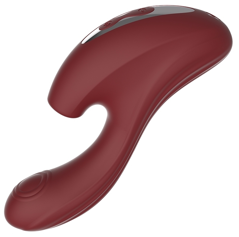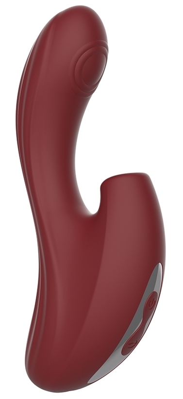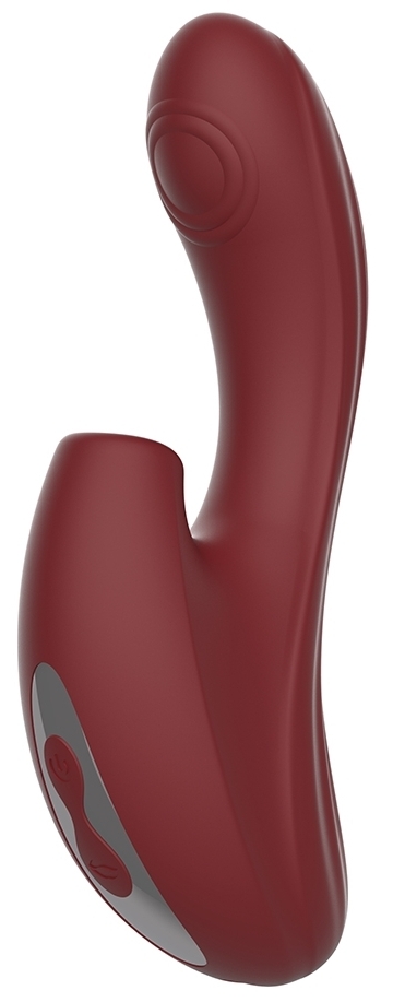 Stimulateur de clitoris avec 10 modes de vibrations et de coups et 10 modes d’aspirations. 2 moteurs indépendants. Partie insérable pour la stimulation du point G. Étanche. Recharge par USB. Dimensions : Longueur de 10 cm. Largeur de 3.5 cm. En silicone.