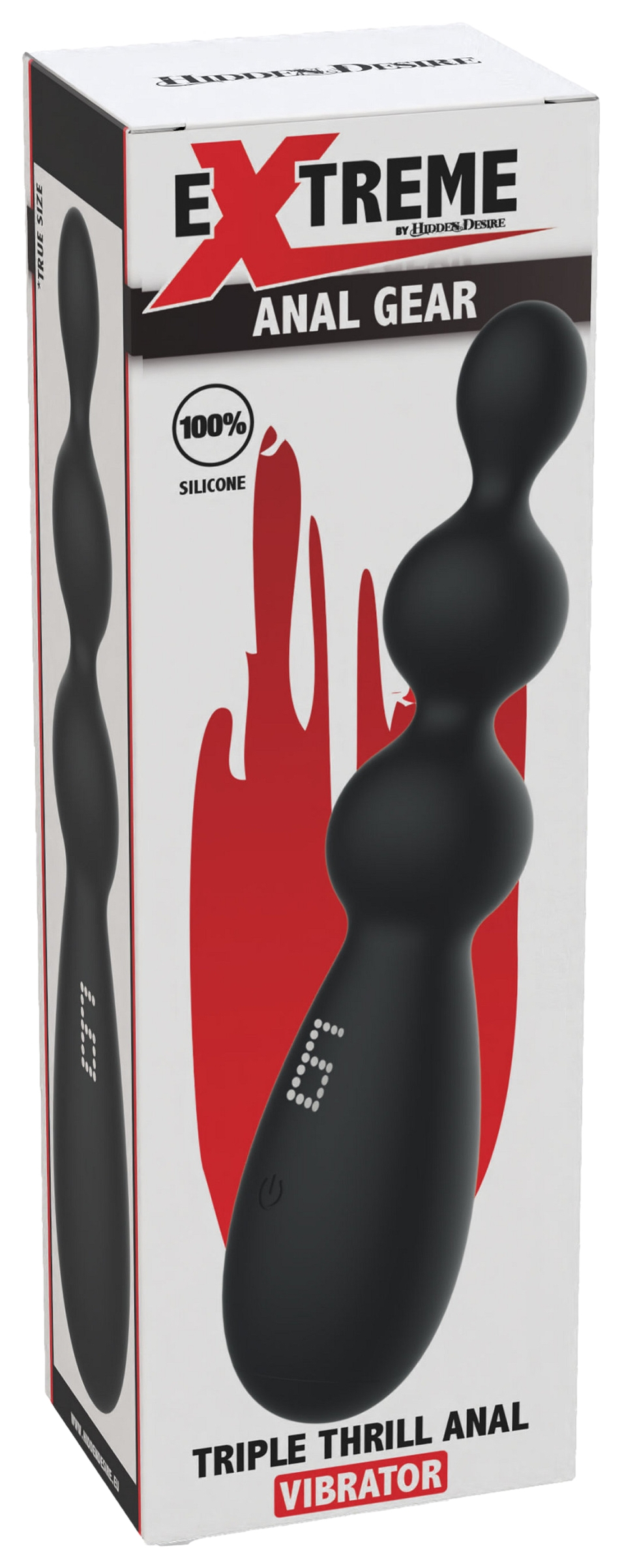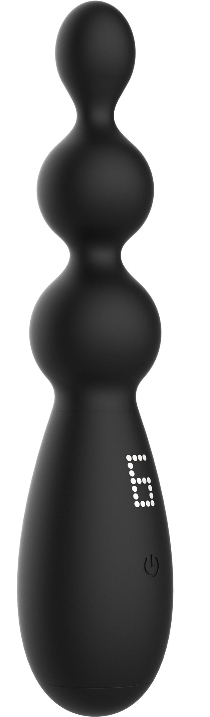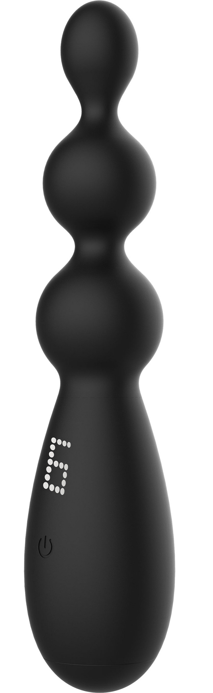 Stimulateur prostatique vibrant d’une longueur insérable de 11 cm. 3 boules de 2.1 à 3.6 cm de largeur pour 6 modes de vibrations et 3 vitesses. En silicone, avec un affichage digital.