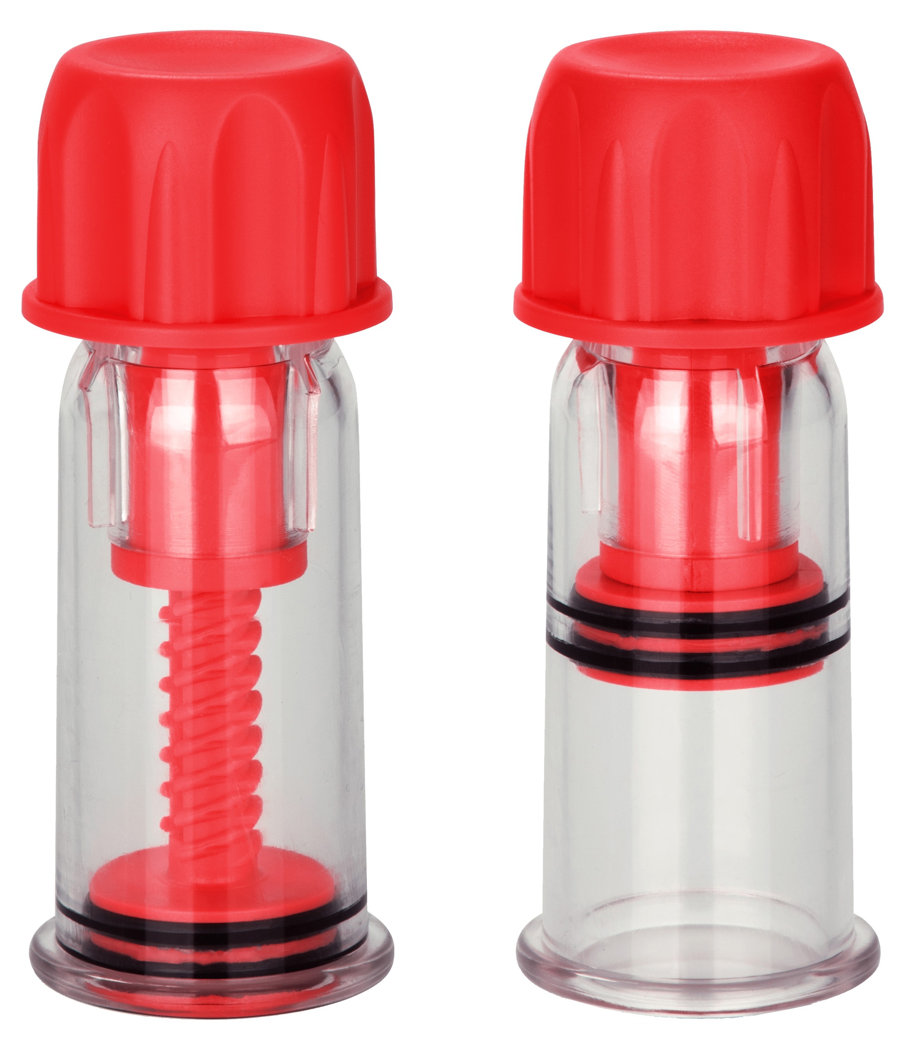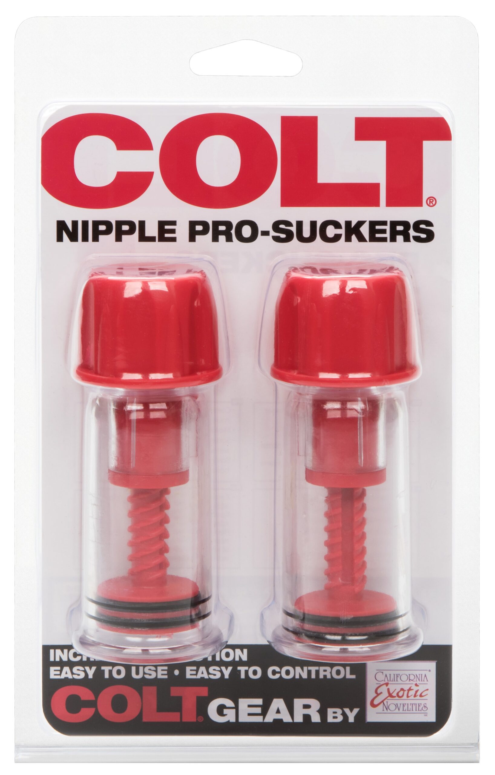 Ces suce-tétons rouges de la marque Colt sont conçus avec des cylindres transparents qui aspirent les tétons et les rendent sensibles.Avec une vis sans fin. Diamètre de 30mm. Dimensions : 10.5 x 4.5cm. En plastique ABS