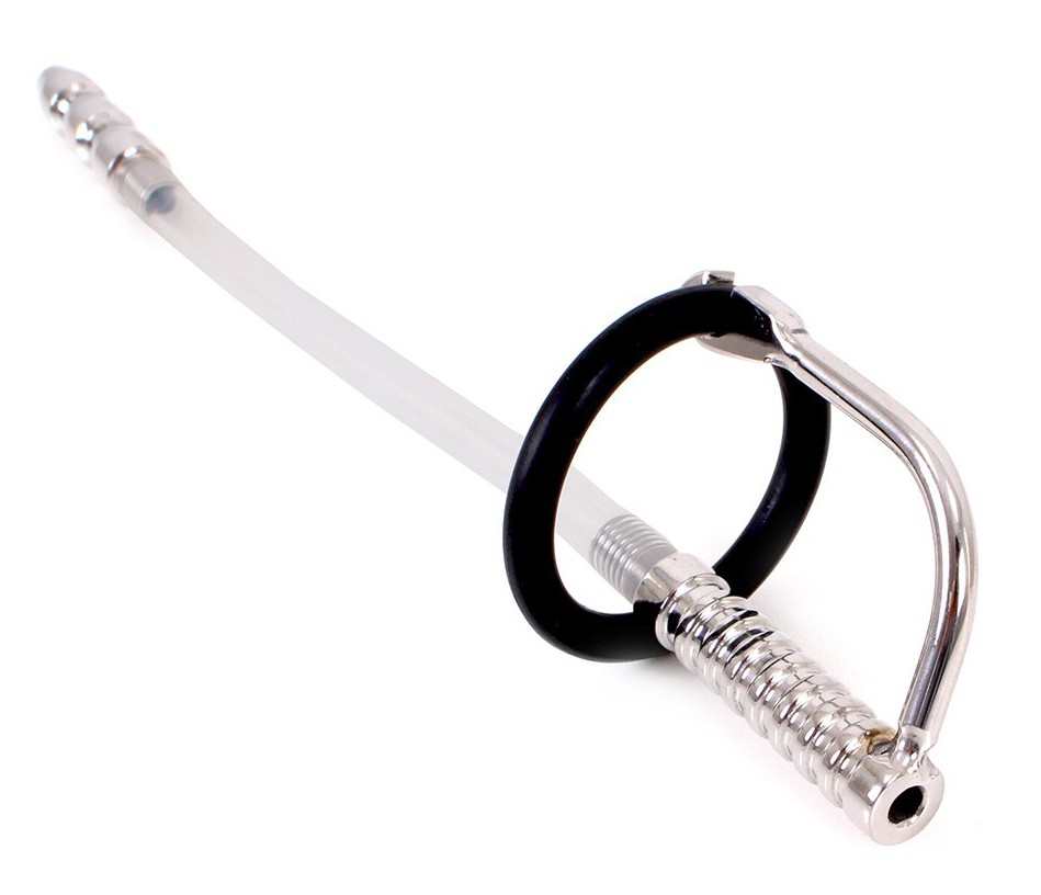 Cette tige d’urètre possède un trou central laissant passer les fluides tels que l’urine et le sperme.Cette accessoire est composé de: une longueur insérable de 21cm avec un tuyau flexible et transparent l’extrémité en métal avec un diamètre de 9mm les anneaux en silicone de 25 et 32mm pour maintenir la tige autour du gland. Fabriqué en acier inox